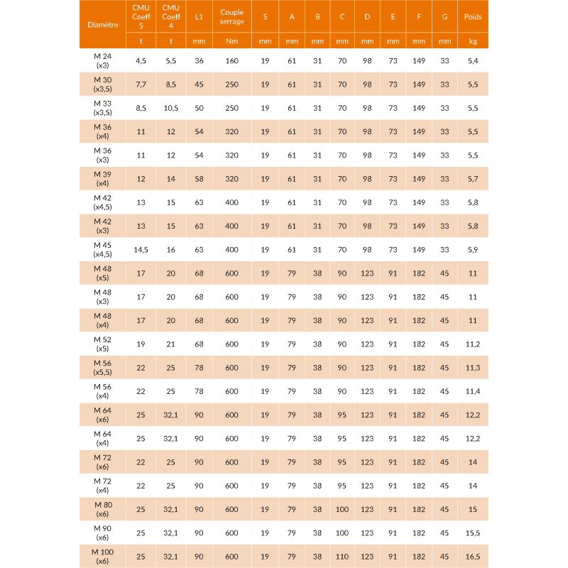 - Capacité : 5,5t à 32,1t (coefficient 4) et 4,5t à 25t (coefficient 5)