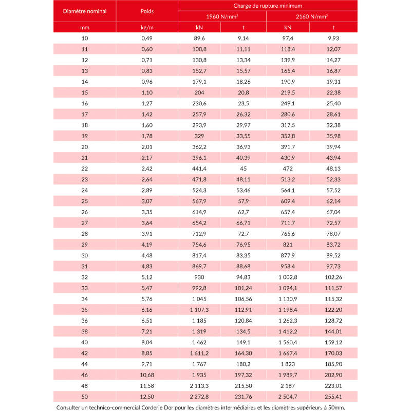 - Coefficient perte au câblage : 0,82 (1960 N/mm²) 0,80 (2160 N/mm²)