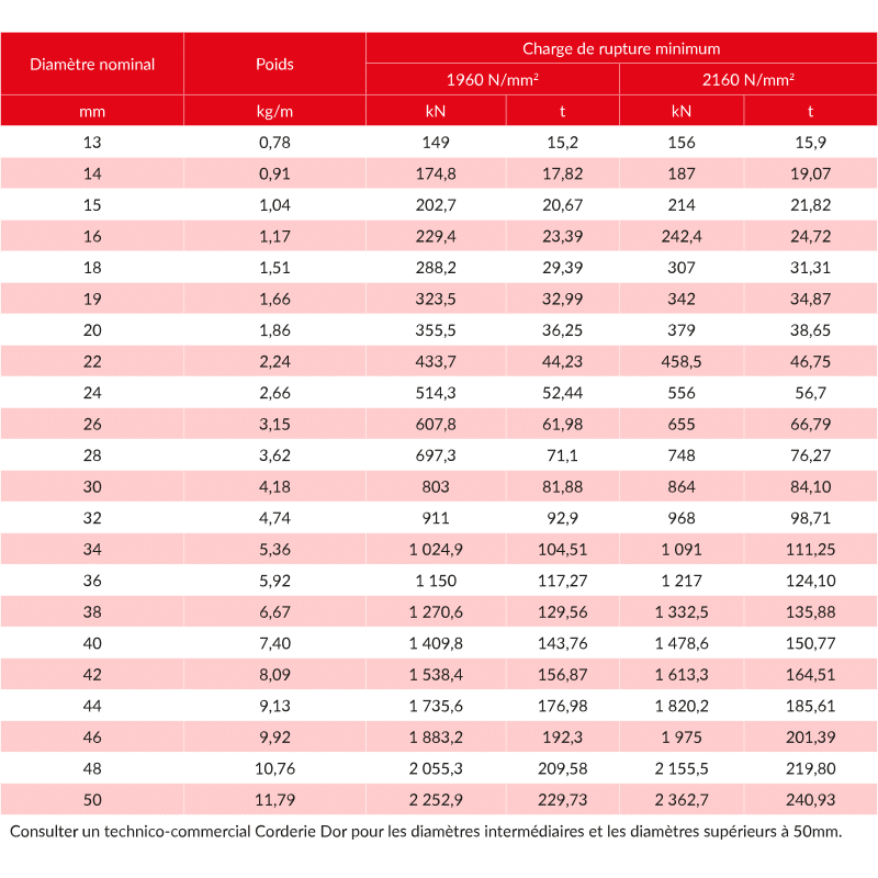 - Coefficient perte au câblage : 0,85 (1960 N/mm²) 0,81 (2160 N/mm²)
