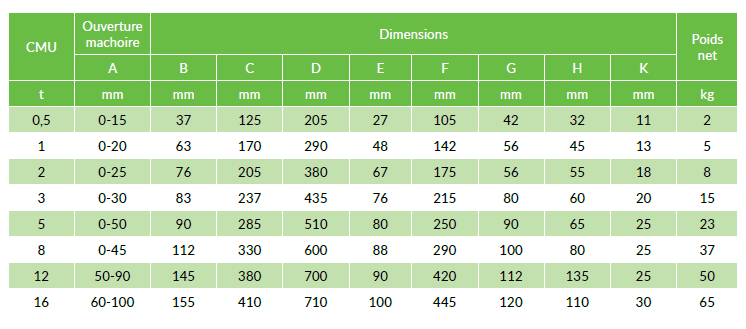 • Capacité : 0,5t à 10t